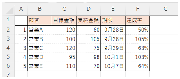 これは「日付が今日以前、かつ達成率が100%未満」ならTRUEを返す数式となるます