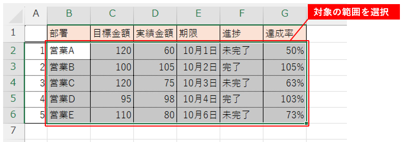 書式を設定する範囲を選択します