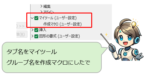 おおぉーッ!このタブに自分で作ったマクロが入るんか!?