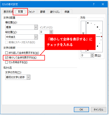 フォントサイズの調整でセルにフィットさせる方法や
