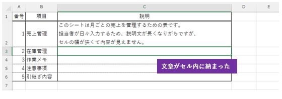 文章がはみ出しているセルを選択して