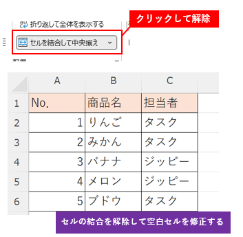 🩹ステップ①:結合セルを“治療(解除)”する