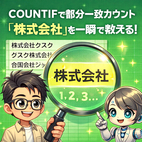 使うのはこれ👉 =COUNTIF(A2:A100,”*株式会社*”)