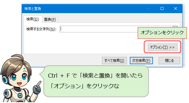 Ctrl + F で検索しても出てこんねん!