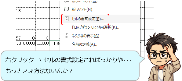 右クリックしてセルの書式設定 を探してたんはなんやったんや・・・