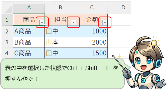 これはExcel触るたびに Ctrl + Shift + L 押すクセつくな!
